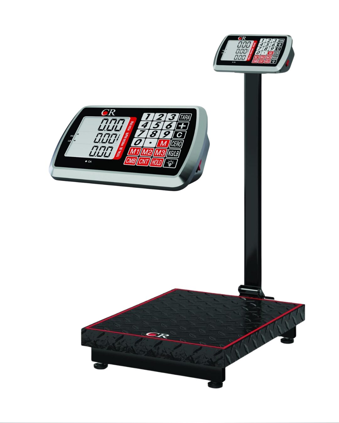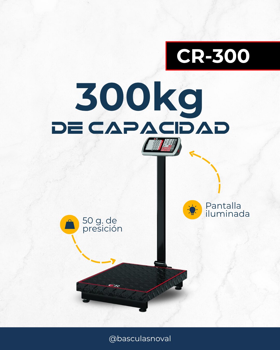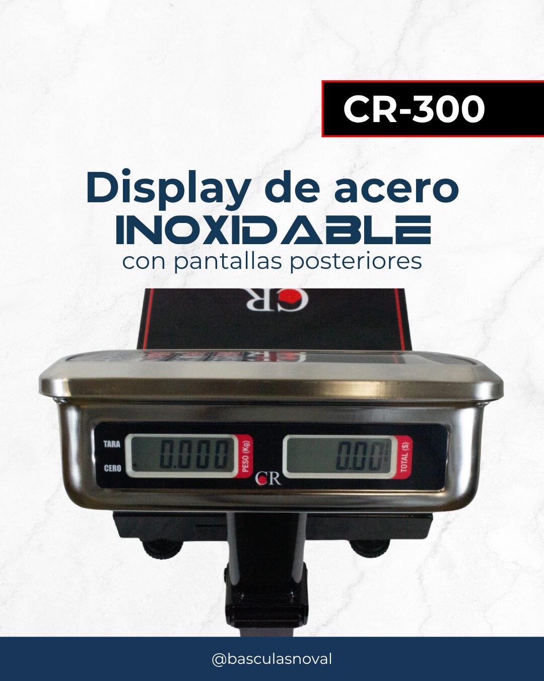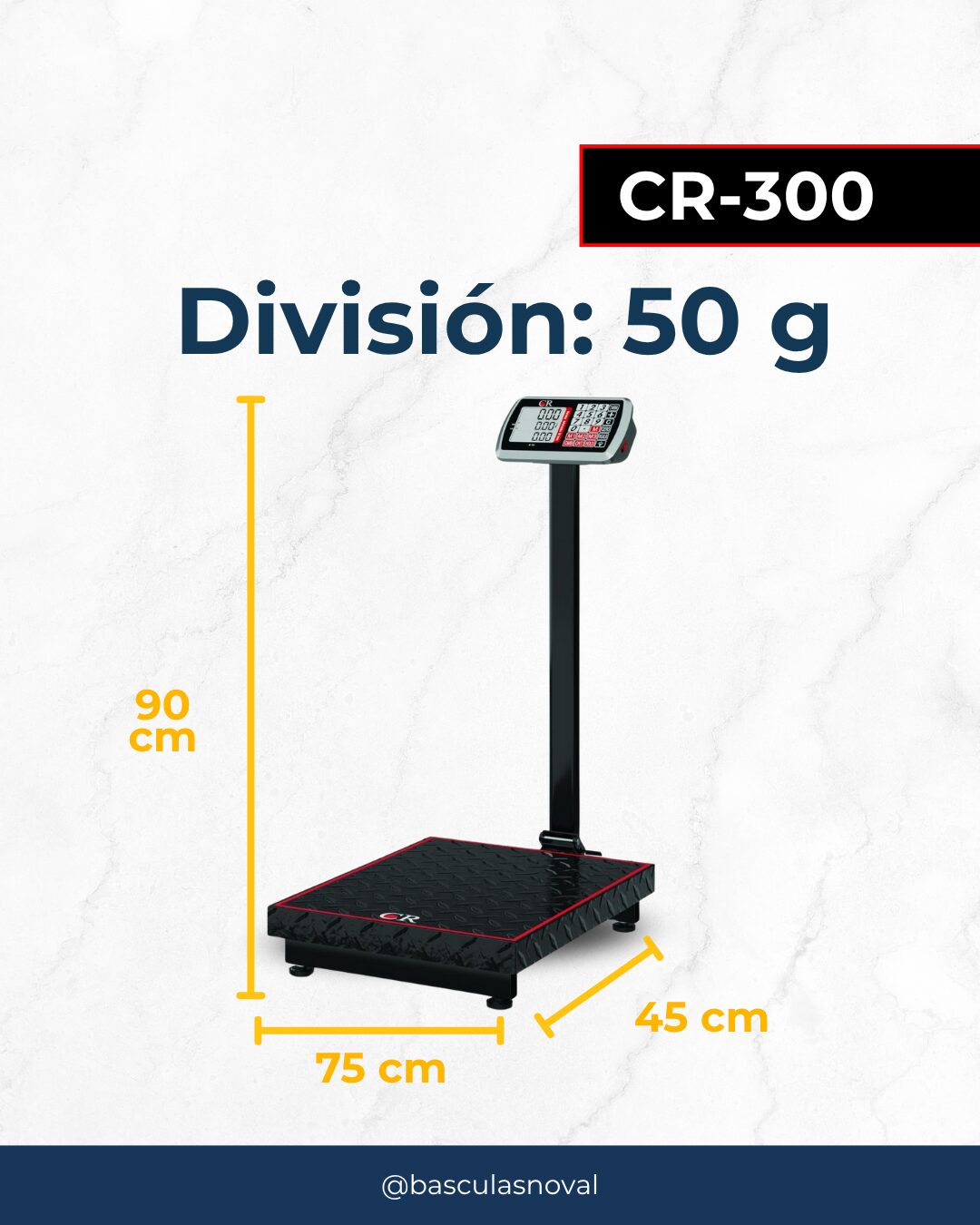 Báscula digital de plataforma. Capacidad de 300 kg. a 50 gr. Incluye indicador doble vista en acero inoxidable. Display corrido: precio, peso y total con luz blanca. Medida: 45 cm. x 60 cm. plato en acero al carbon con patas.