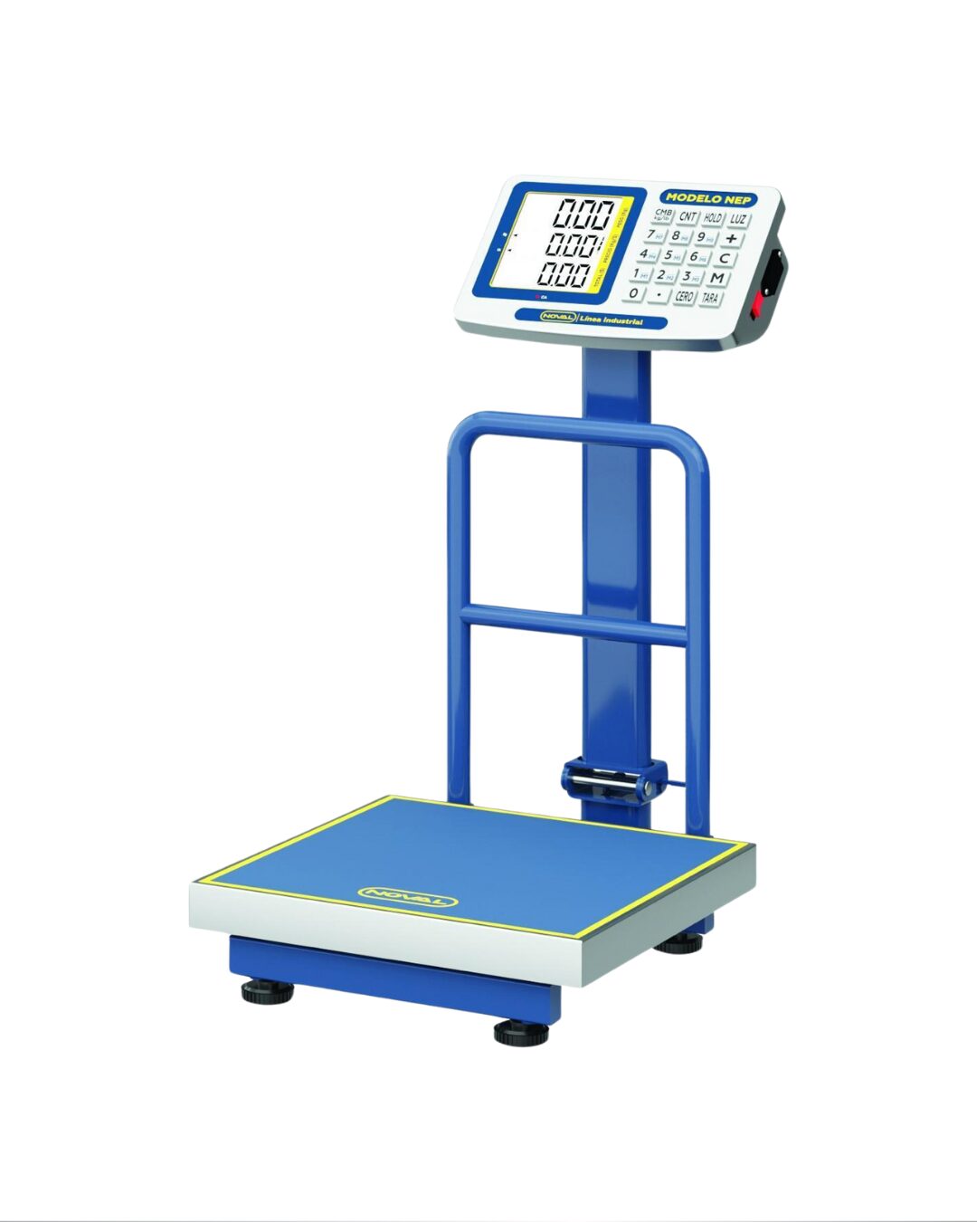 Equipo de plataforma plegable con capacidad de 150 kilos. Cuenta con una estructura y un modulo indicador en acero inoxidable asi como un poste abatible, lo que la hace totalmente portátil. Esta báscula de recibo contiene una pantalla LED triple display.
